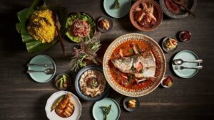 "Rempapa" is a smart-casual restaurant featuring tan banquettes, powder blue chairs, and terrazzo flooring, offering inventive cuisine that bridges Chinese, Peranakan, Eurasian, Indian, and Malay traditions. The menu ranges from hearty contemporary dishes to century-old recipes, all executed with precision and flair. A must-try is the tender beef cheek “Baca Assam.” Ideal for family meals or gatherings with friends, Rempapa celebrates Singapore’s rich culinary heritage in style.